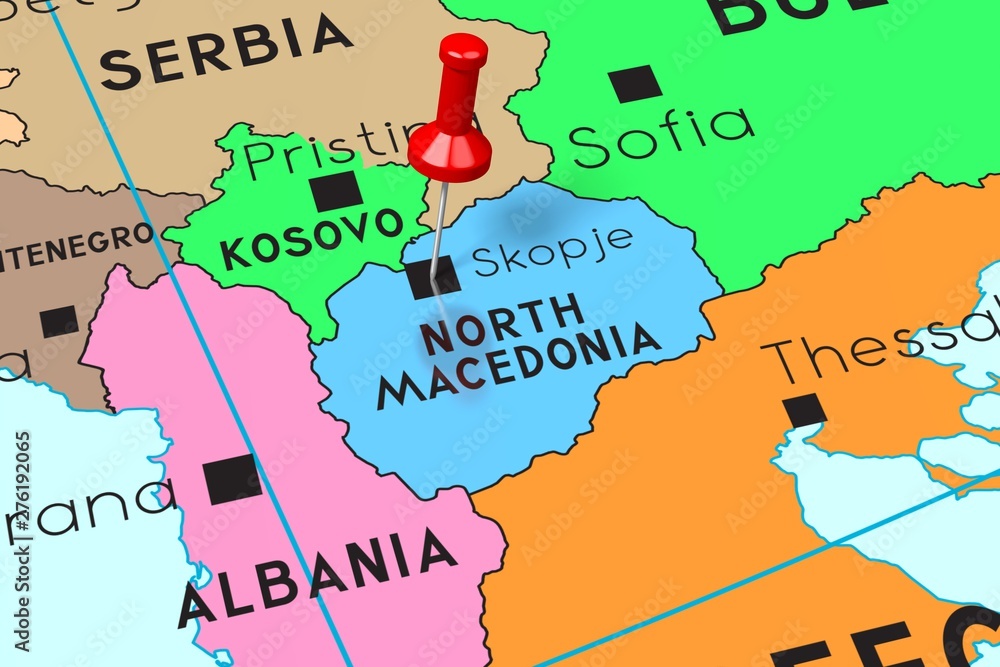 North Macedonia, Skopje capital city, pinned on political map